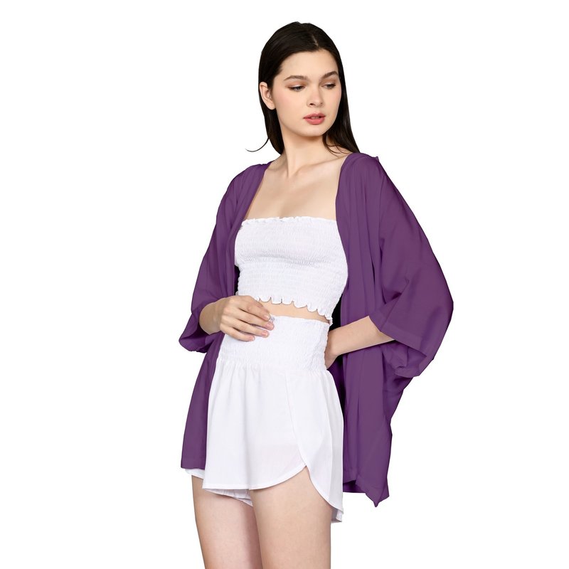Lila short cardigan plum in premium 100% rayon.